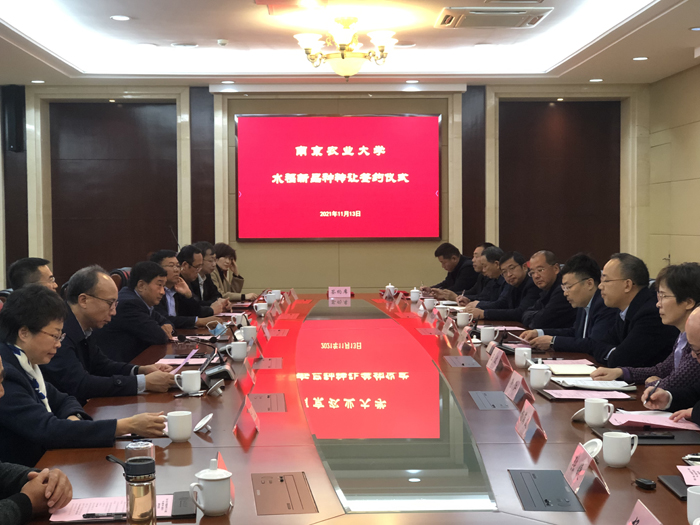 南京農(nóng)業(yè)大學(xué)副校長(zhǎng)丁艷峰、江蘇省種子管理站站長(zhǎng)何金龍、江蘇明天種業(yè)總經(jīng)理嚴(yán)輝民、南京農(nóng)業(yè)大學(xué)研究院院長(zhǎng)姜東、農(nóng)學(xué)院院長(zhǎng)朱艷、特約教授盛勝蘭研究員、江蘇明天種業(yè)副總經(jīng)理王波、徐江等相關(guān)領(lǐng)導(dǎo)、專家參加了此次簽約活動(dòng)。