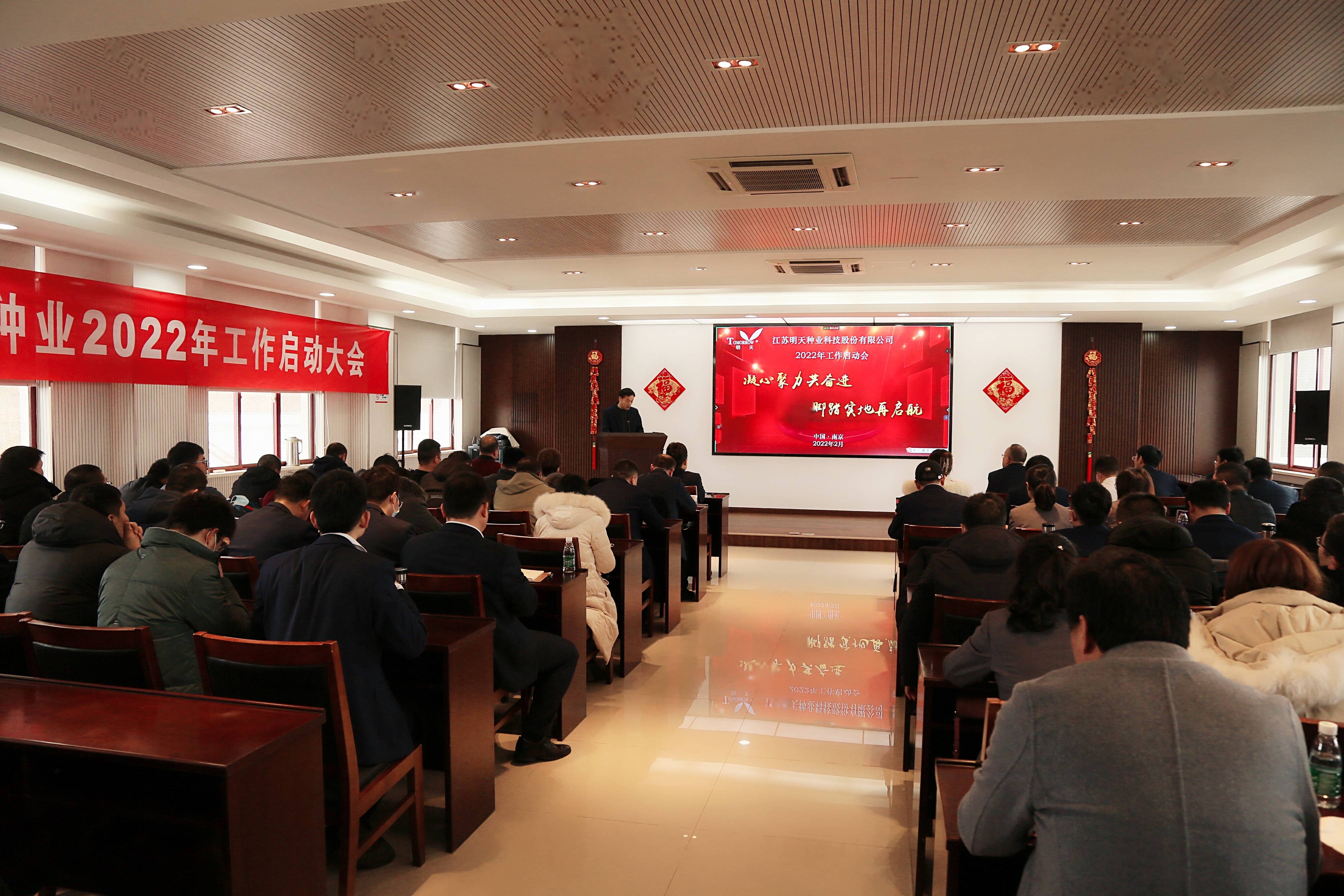 萬物逢春可復蘇,天道酬勤鑄不凡!新年伊始,為淡化節日氛圍,盡快投入工作狀態,2月17日,明天種業在江蘇省農科院糧食所會議室召開了2022年工作啟動大會,會議由副總經理胡玉成主持,嚴輝民總經理作了“凝心聚力共奮進·腳踏實地再起航”的動員報告。公司全體員工、子公司經理層及2021年度先進和優秀員工參加了本次會議。